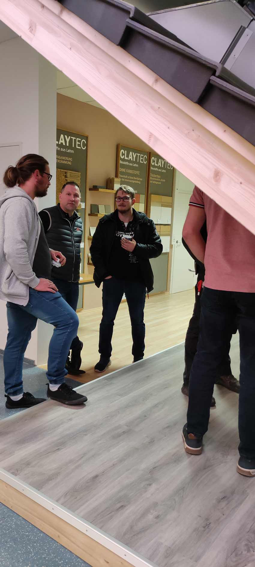 Moderne Lehmbauplatten können als ökologische Alternative inzwischen die „klassische“ Gipskartonplatte im Trockenbau ersetzen. Die einfache Verarbeitung und der vielseitige Einsatz – z. B. als Beplankung von Innenwänden, Holzständerwerken, Trockenbau- oder Lattenkonstruktionen für Trennwände, Vorsatzschalen, abgehängte Decken wie auch für den Dachgeschoßausbau – machen diese Baustoffinnovation so interessant. Attraktive Möglichkeiten bietet z.B. auch die Verbindung mit einer integrierten unsichtbaren Wandheizung.