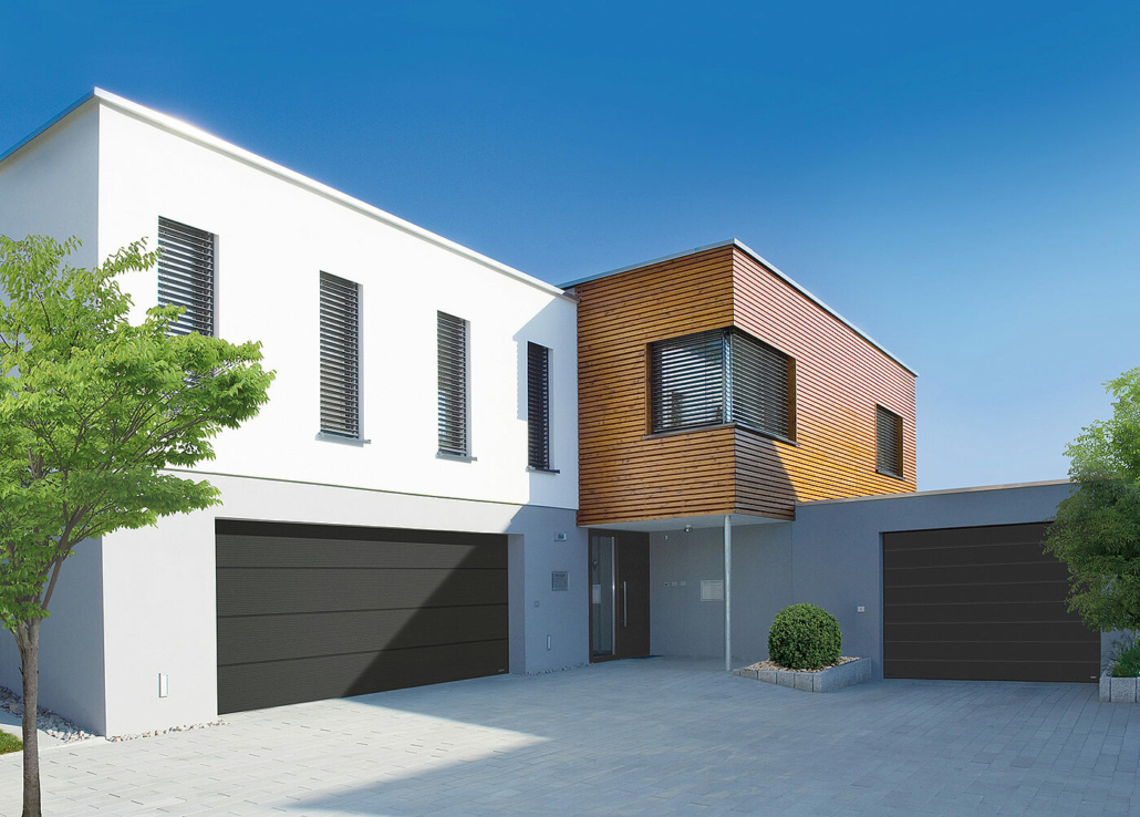Sektionaltore von Novoferm, mit unterschiedlichen Oberflächenprägungen, in zahlreichen Farben erhältlich. Platzsparende Antriebe sorgen für mehr Raum, das umfangreiche Zubehör lässt keine Wünsche offen.