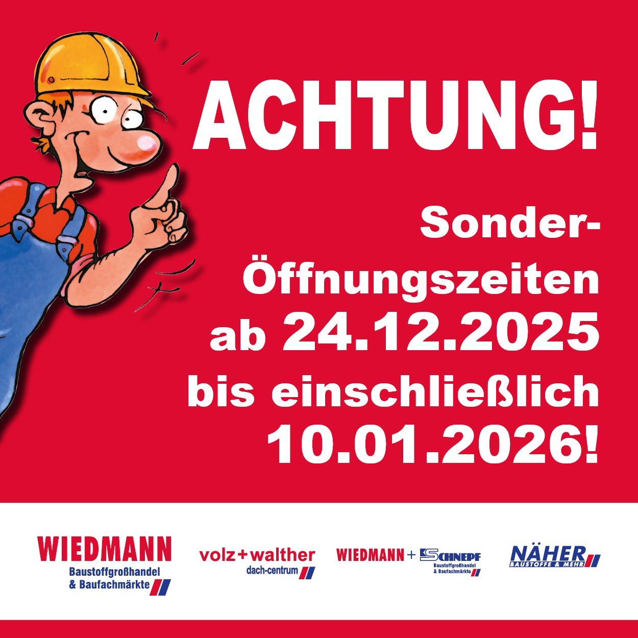 https://www.wiedmann-baustoffe.com/UP1/wp-content/uploads/Titel-HP-News-Dez25-geschlossen_600x600px-_01.png 1250 1250 Nicola Scheurle https://www.wiedmann-baustoffe.com/UP1/wp-content/uploads/Wiedmann-Baustoffe-Logo.png Nicola Scheurle2025-12-15 14:15:042025-12-15 14:28:31Sonderöffnungszeiten über Weihnachten und den Jahreswechsel!Gottfried Wiedmann GmbH
